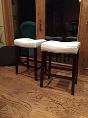 Espresso PU Wood Counter Chairs : I thought the price on these chairs had to be too good to be true... saw the exact same ones at other online stores for $250+ so figured these had to be defective somehow. Took the risk and ordered anyways and to my surprise, these are awesome! They look like $200 chairs and are SO comfy for a backless chair. The cushion is very thick and soft, but yet still supportive. The only thing that may deter someone from buying these is that assembly is very much required and they do not send you all the tools you need. I had to use a power drill in order for them to come out sturdy. But, once assembled they are beautiful!